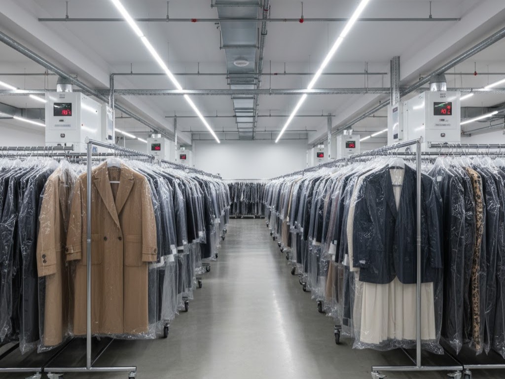 クリーニング後は、温度・湿度が適切に管理されたアパレル専用倉庫で最長8ヶ月間の無料保管が可能です。紫外線や湿気による樹脂劣化を防ぎ、次シーズンまで最適な状態でお預かりします。