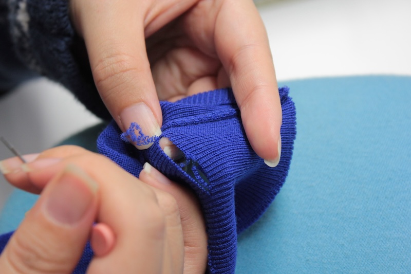 デアでは、クリーニングだけでなく、ニットのお直しにも対応しています。