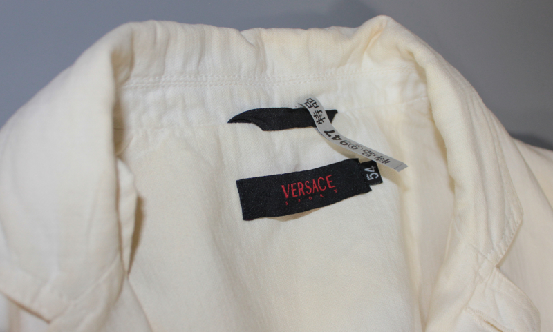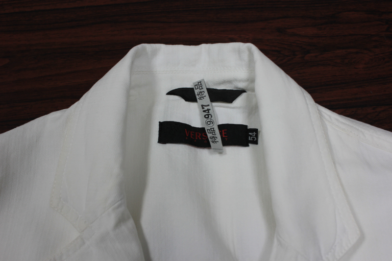 本来は白さが爽やかなジャケットなのですが、襟元の汚れやすい部分に黄ばみが見られます。